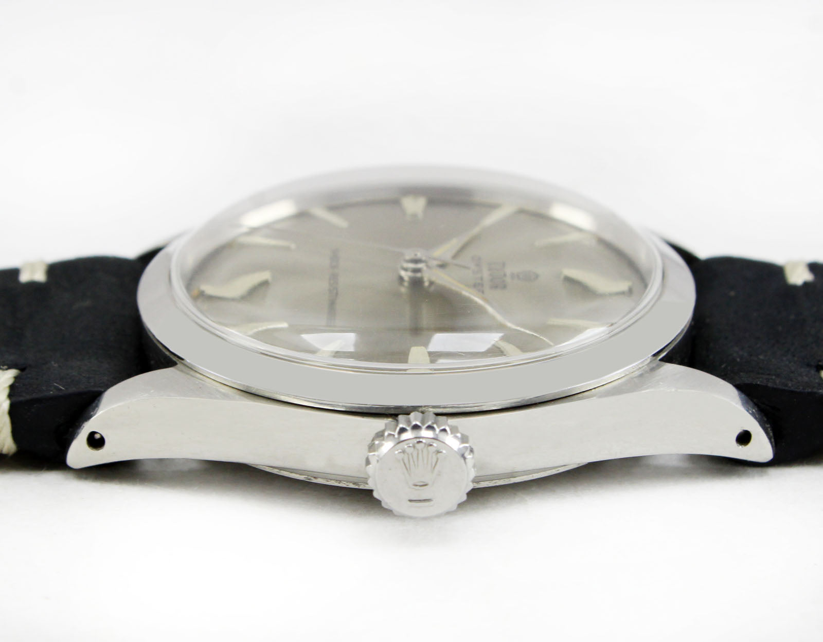 Dial: The original dial has been kept as-is. Nice sunburst grey dial, steel and luminous index, steel and luminous hands