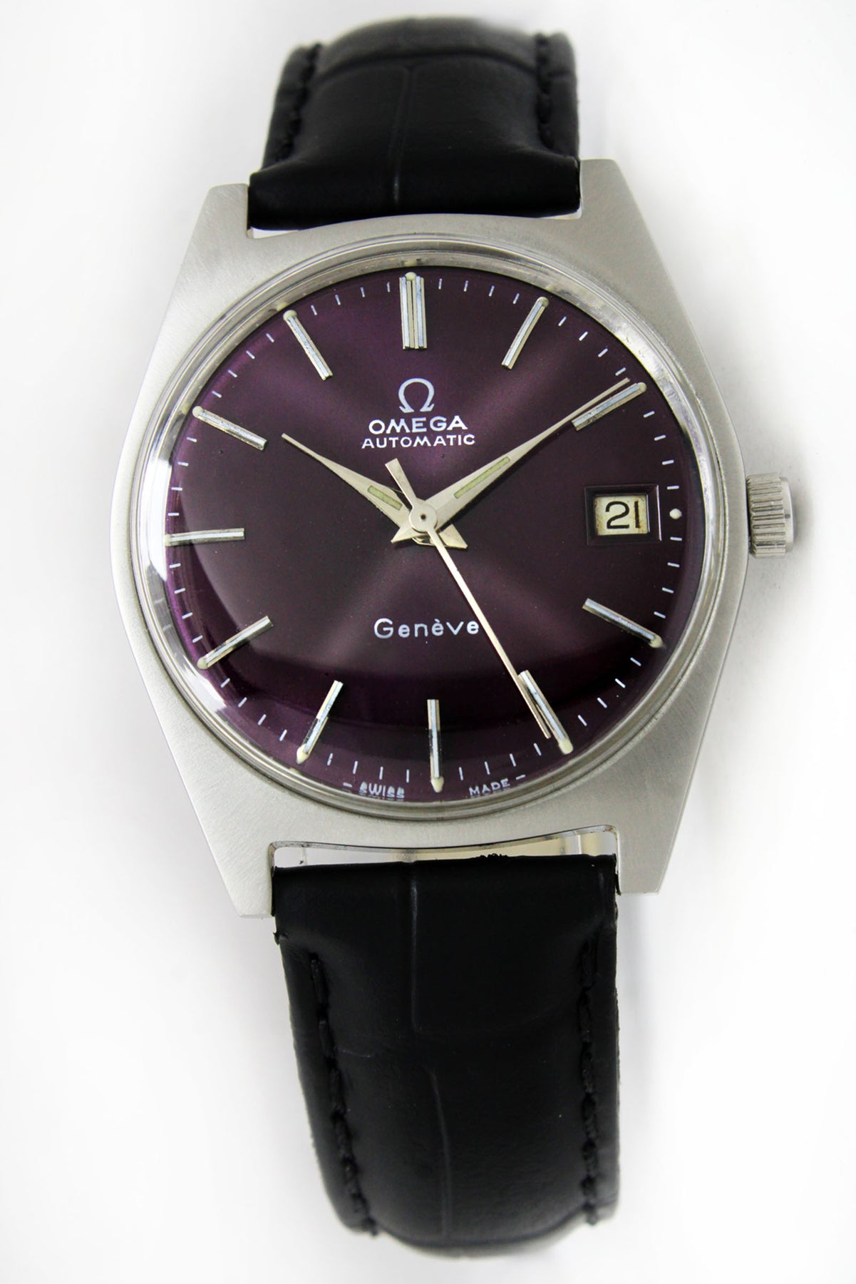 Vintage Omega Geneve Automatic Date 34mm Men Steel Watch Ref 166041