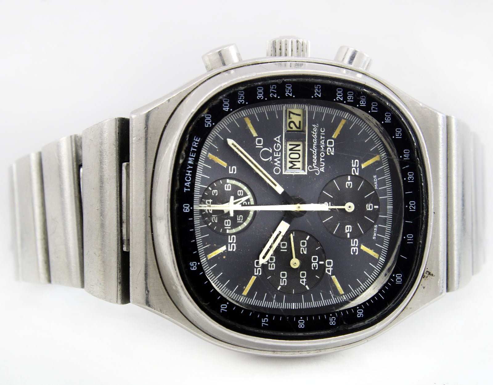 Title: Omega Speedmaster Tv Automatic Day Date Chronograph Steel Mens Vintage Watch Ref 176.0014