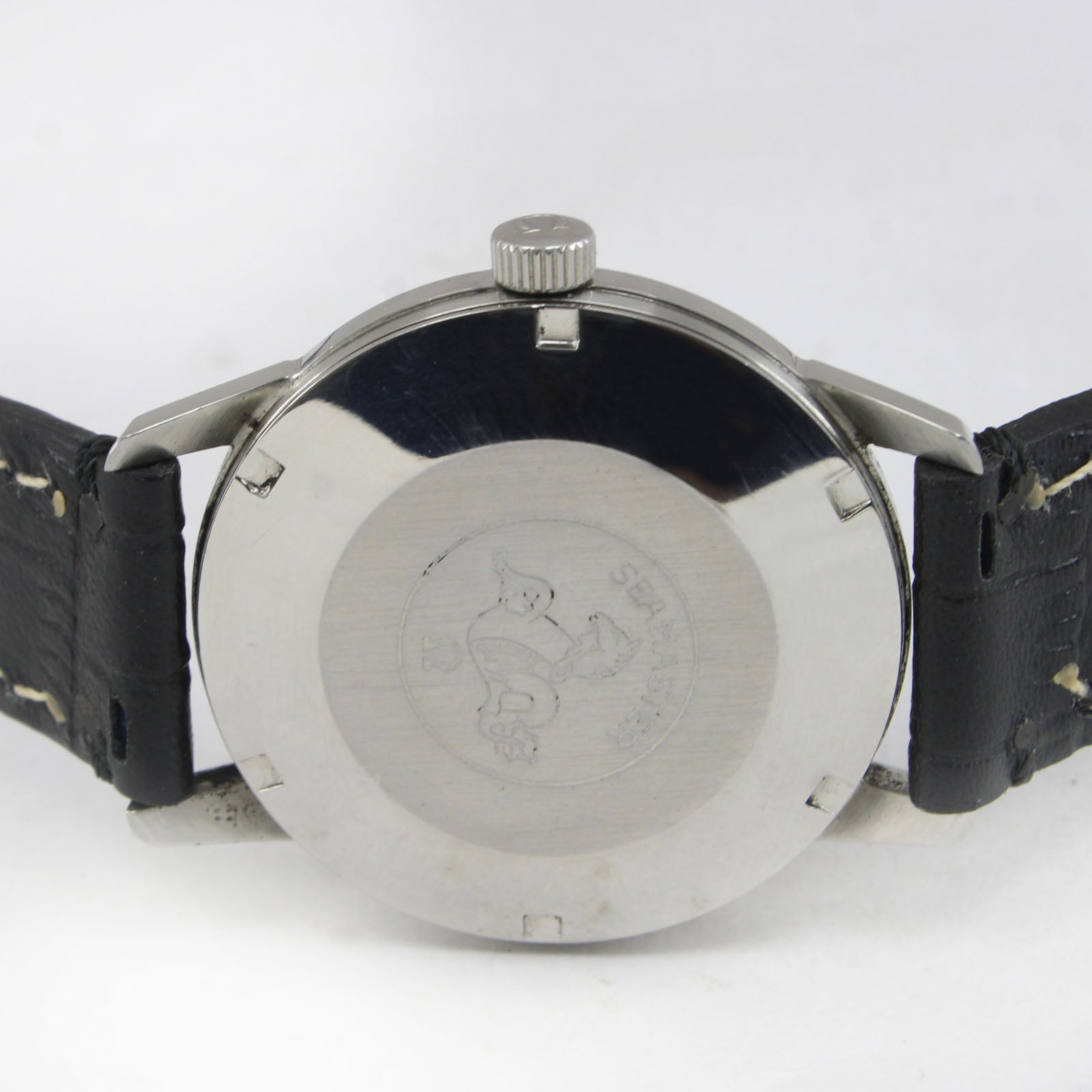 Case Material: Stainless Steel Case Diameter: 35mm Waterproof: No Glass: Plexiglass Caseback: Screwback Dial: Black (Repainted dial) Dial Numerals: Figures, luminous Index