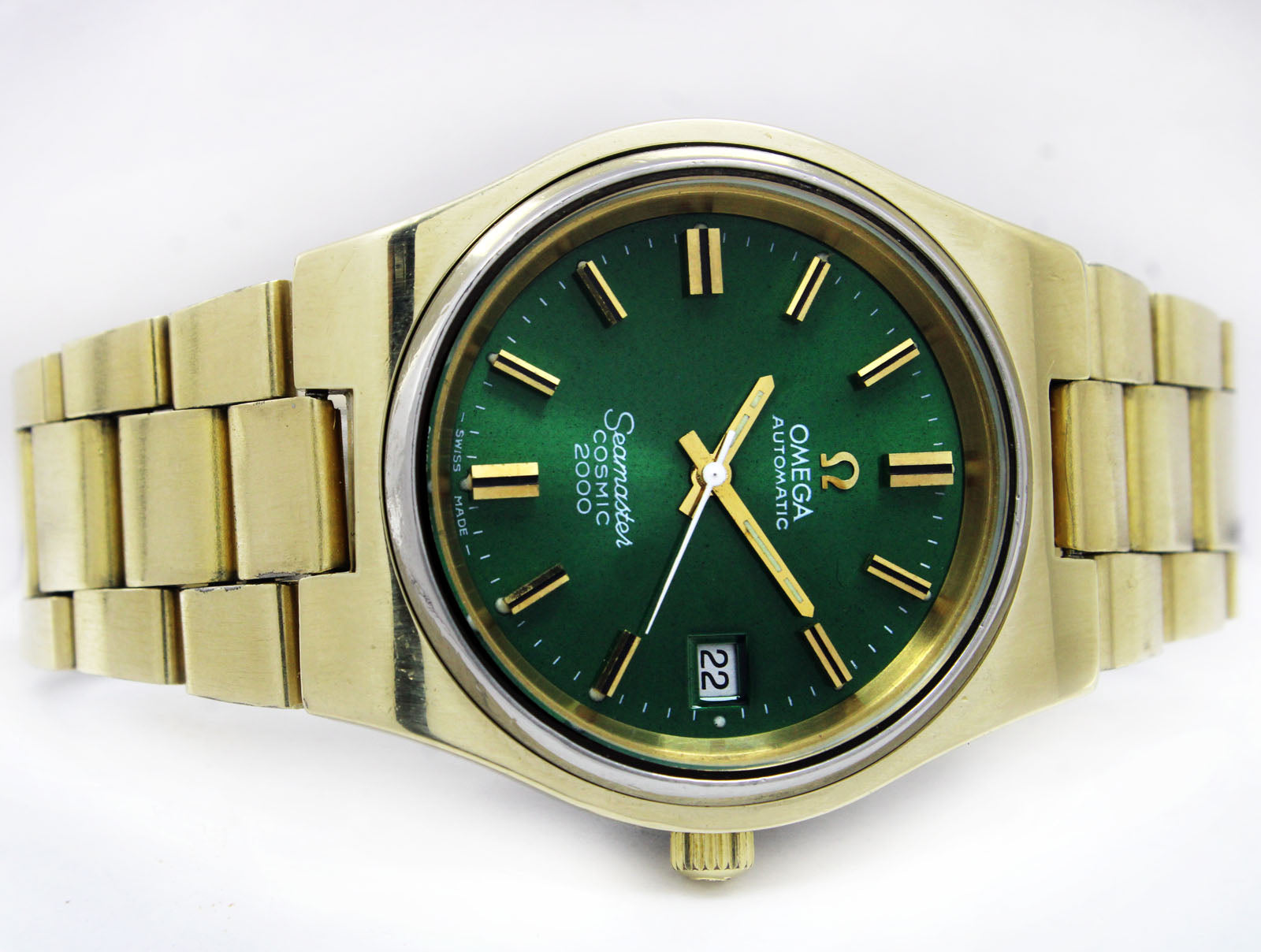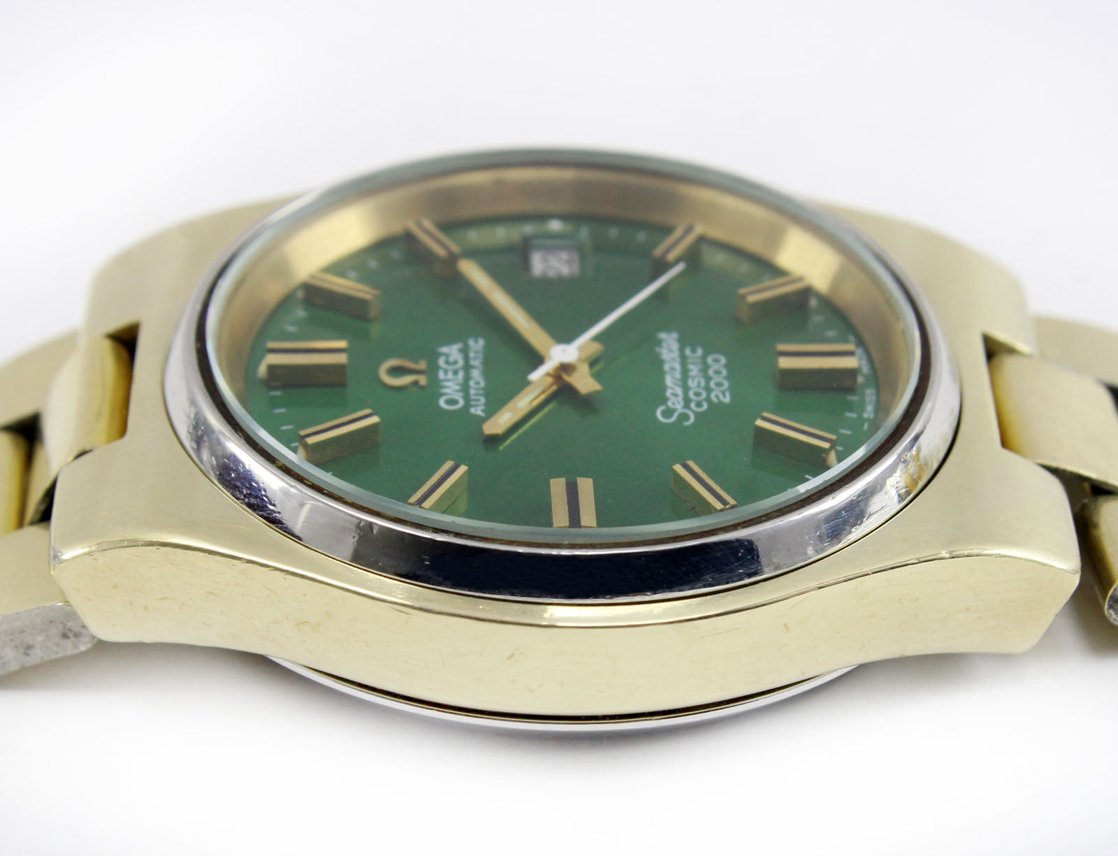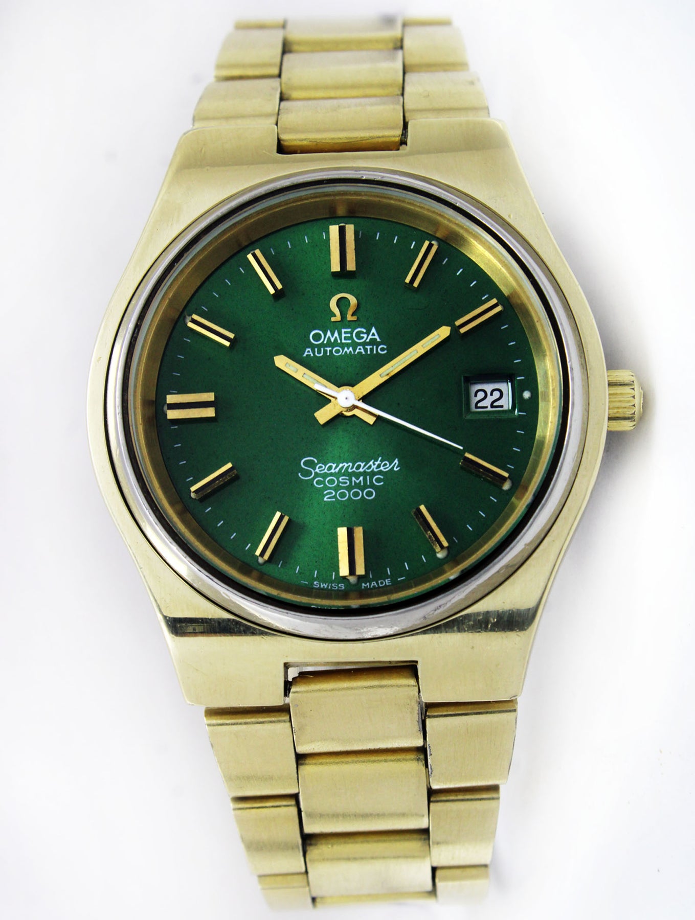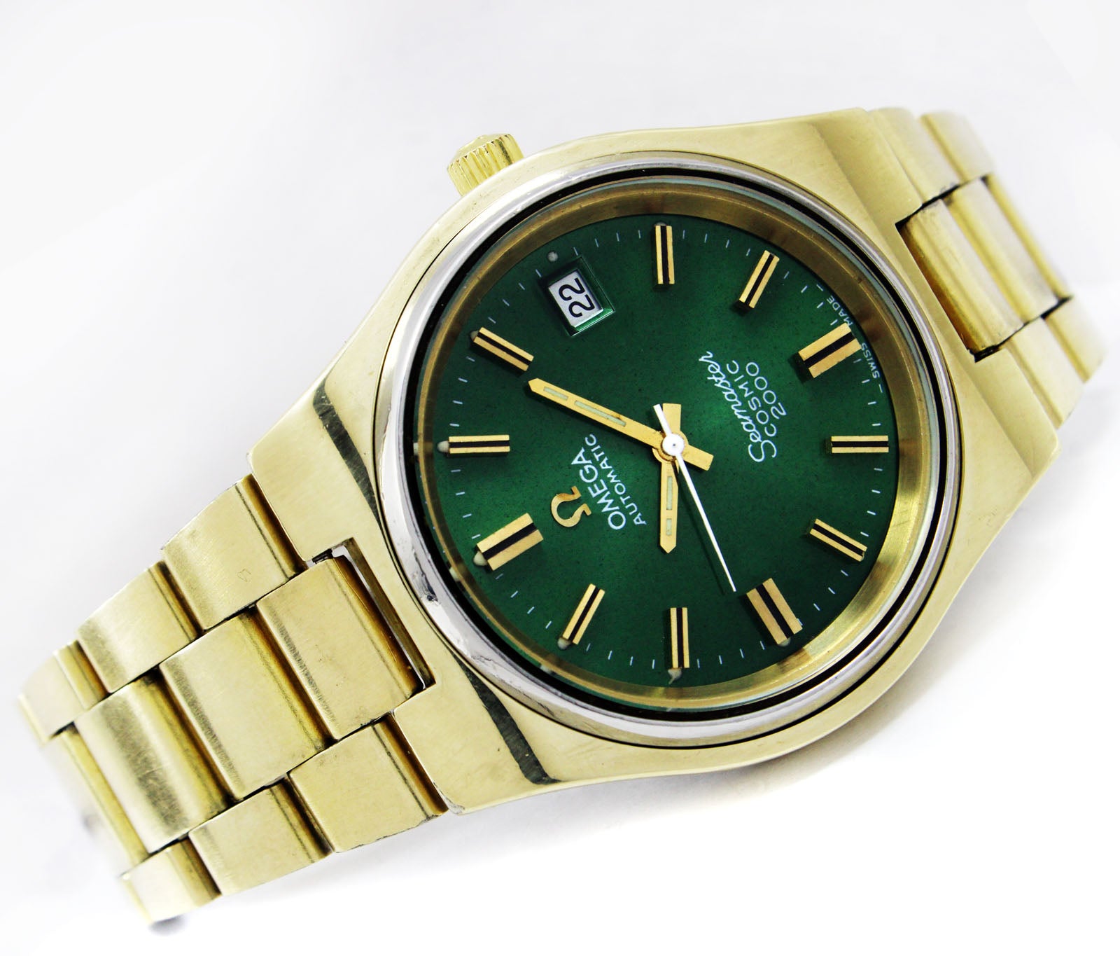 Title: Omega Seamaster Cosmic 2000 Jumbo Sunburst Green 38mm Gold Plated Vintage Watch