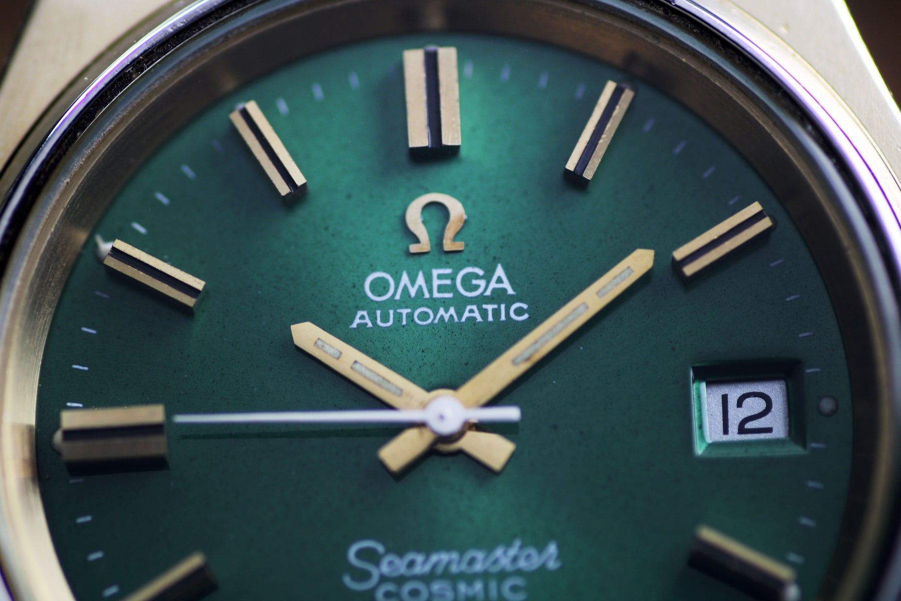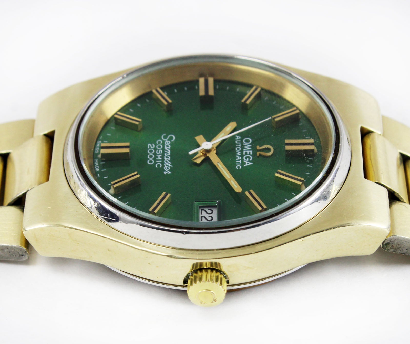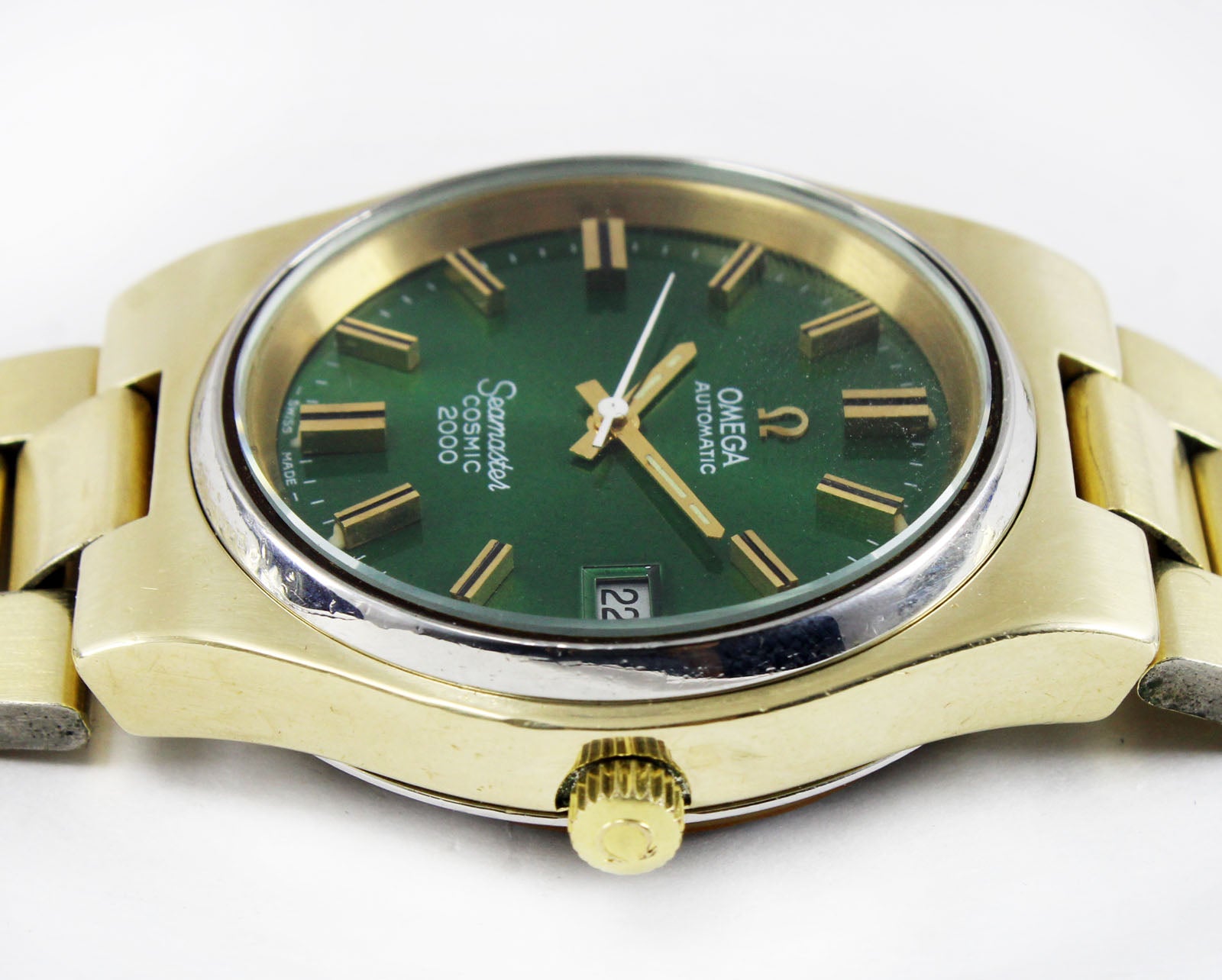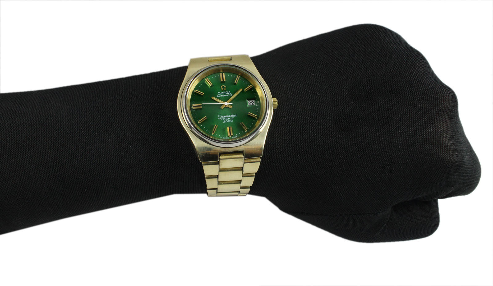 Title: Omega Seamaster Cosmic 2000 Jumbo Sunburst Green 38mm Gold Plated Vintage Watch