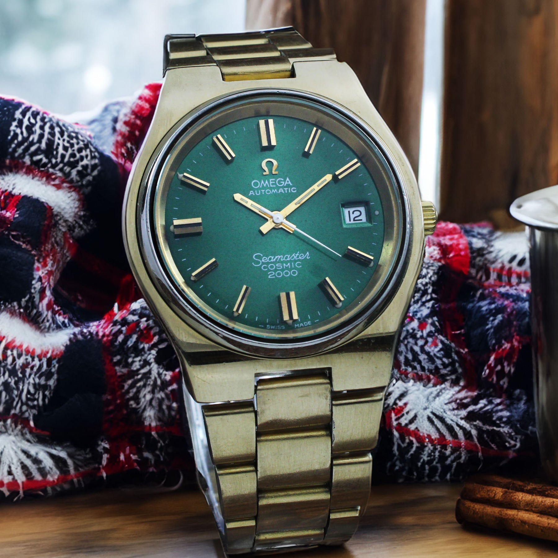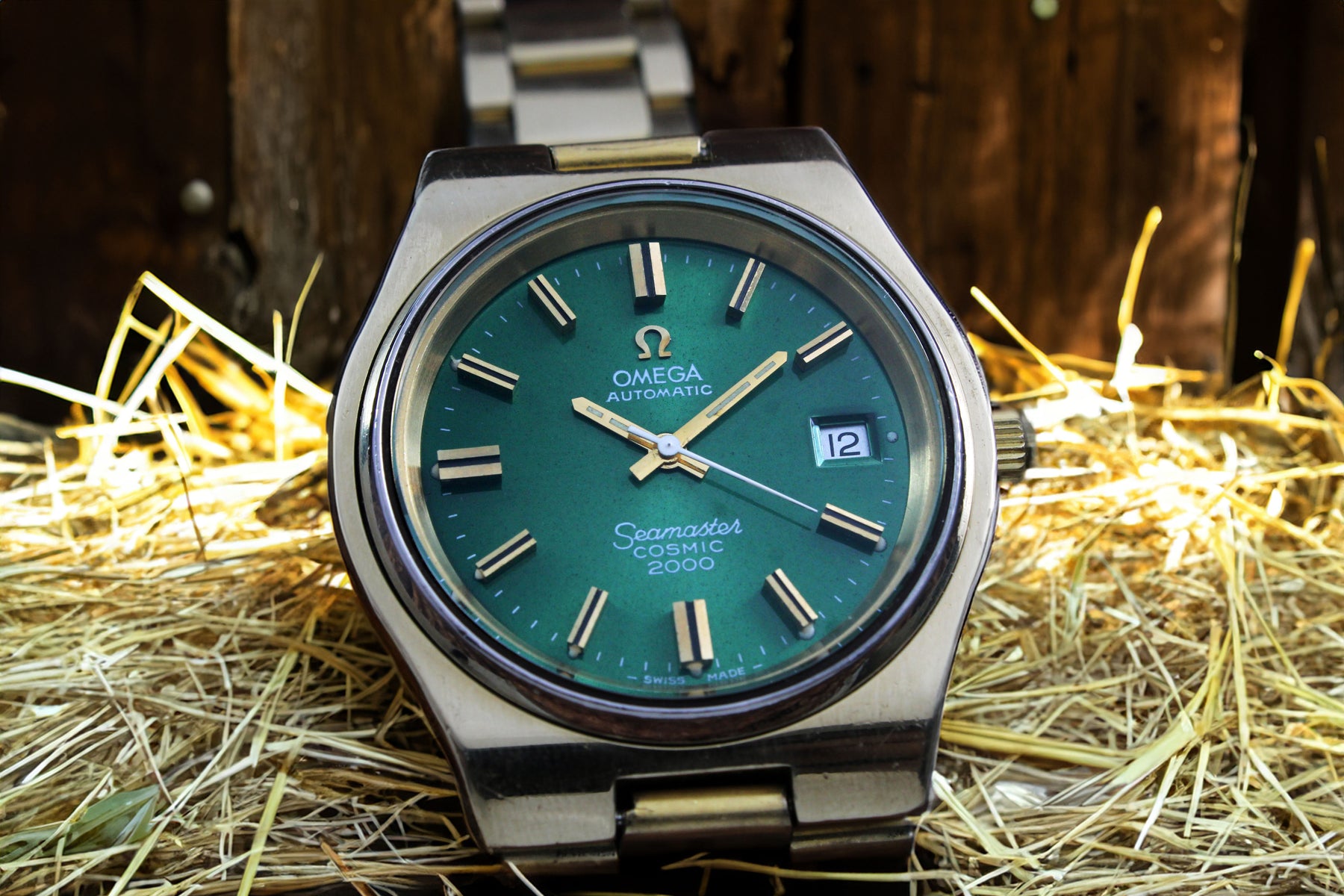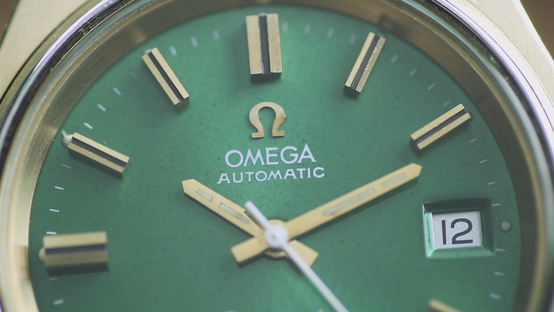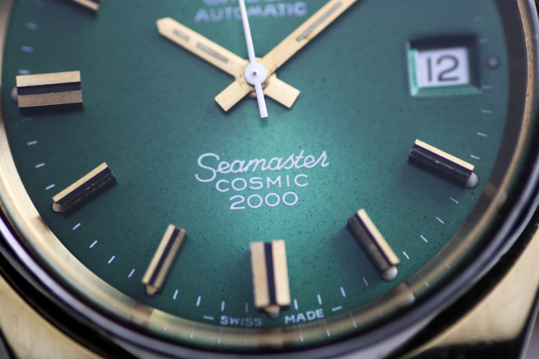 Title: Omega Seamaster Cosmic 2000 Jumbo Sunburst Green 38mm Gold Plated Vintage Watch