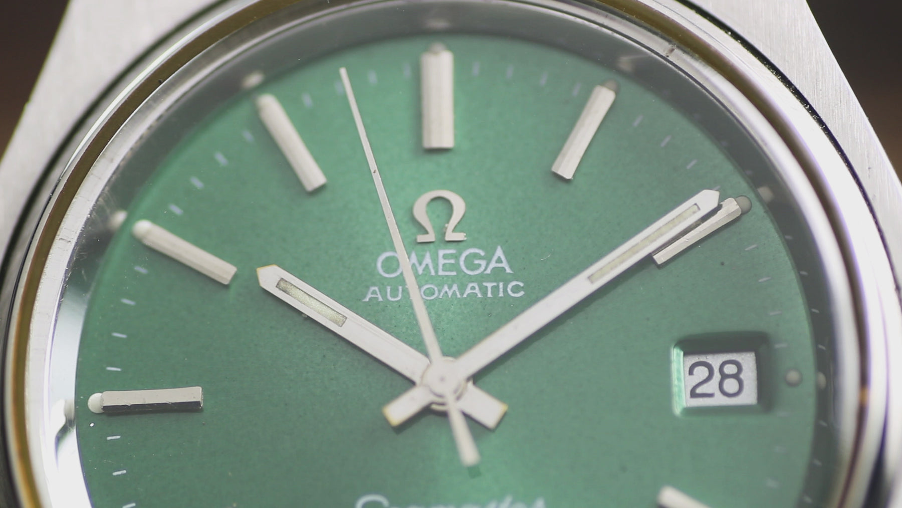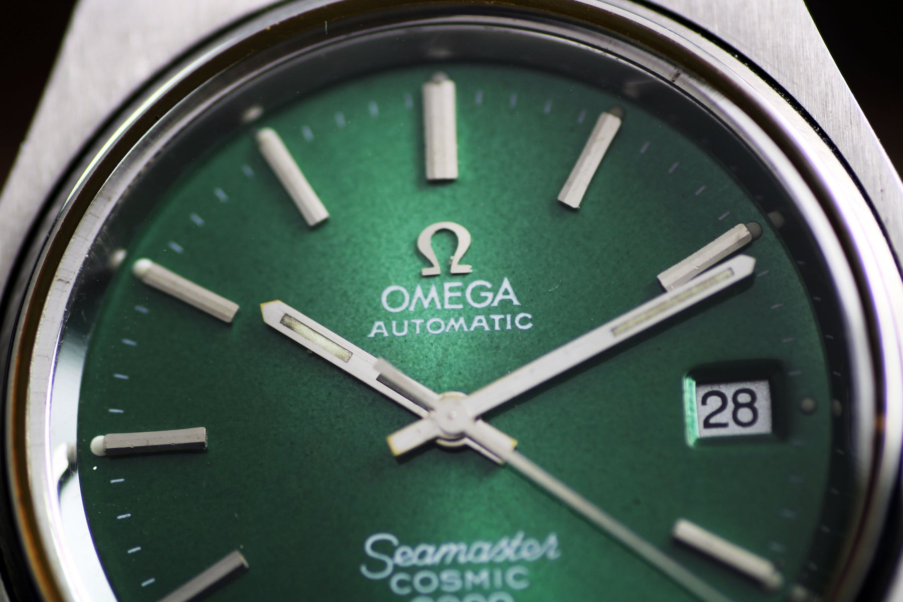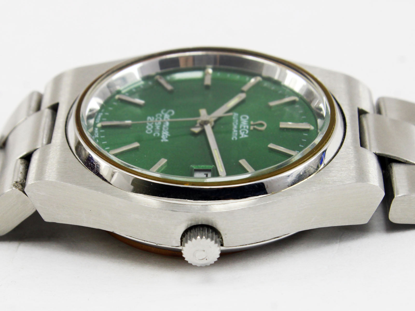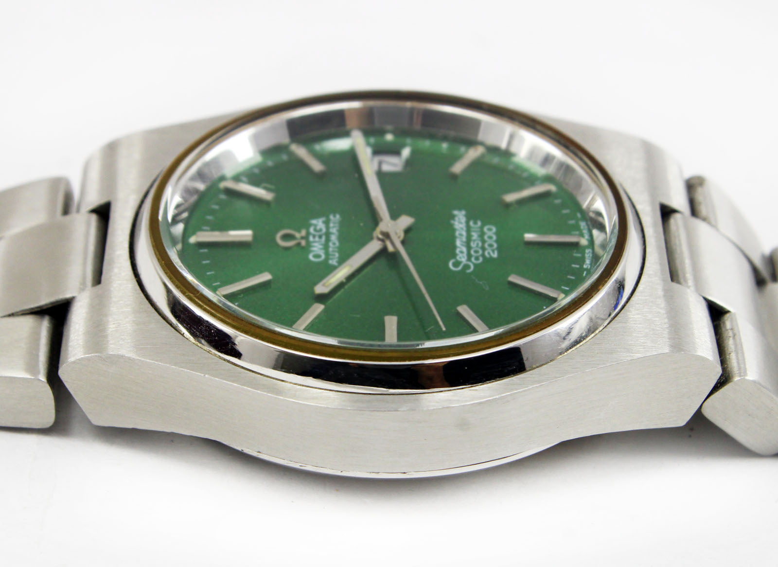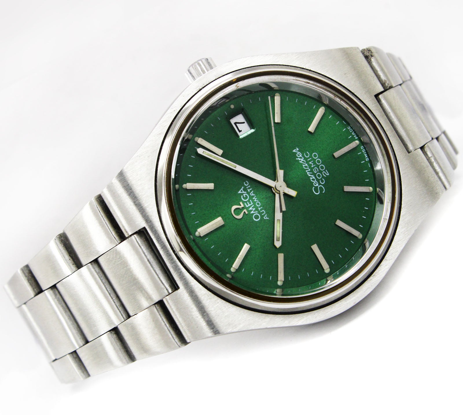 Title: 1973 Omega Seamaster Cosmic 2000 Jumbo Sunburst Green 38mm Steel Vintage Watch
