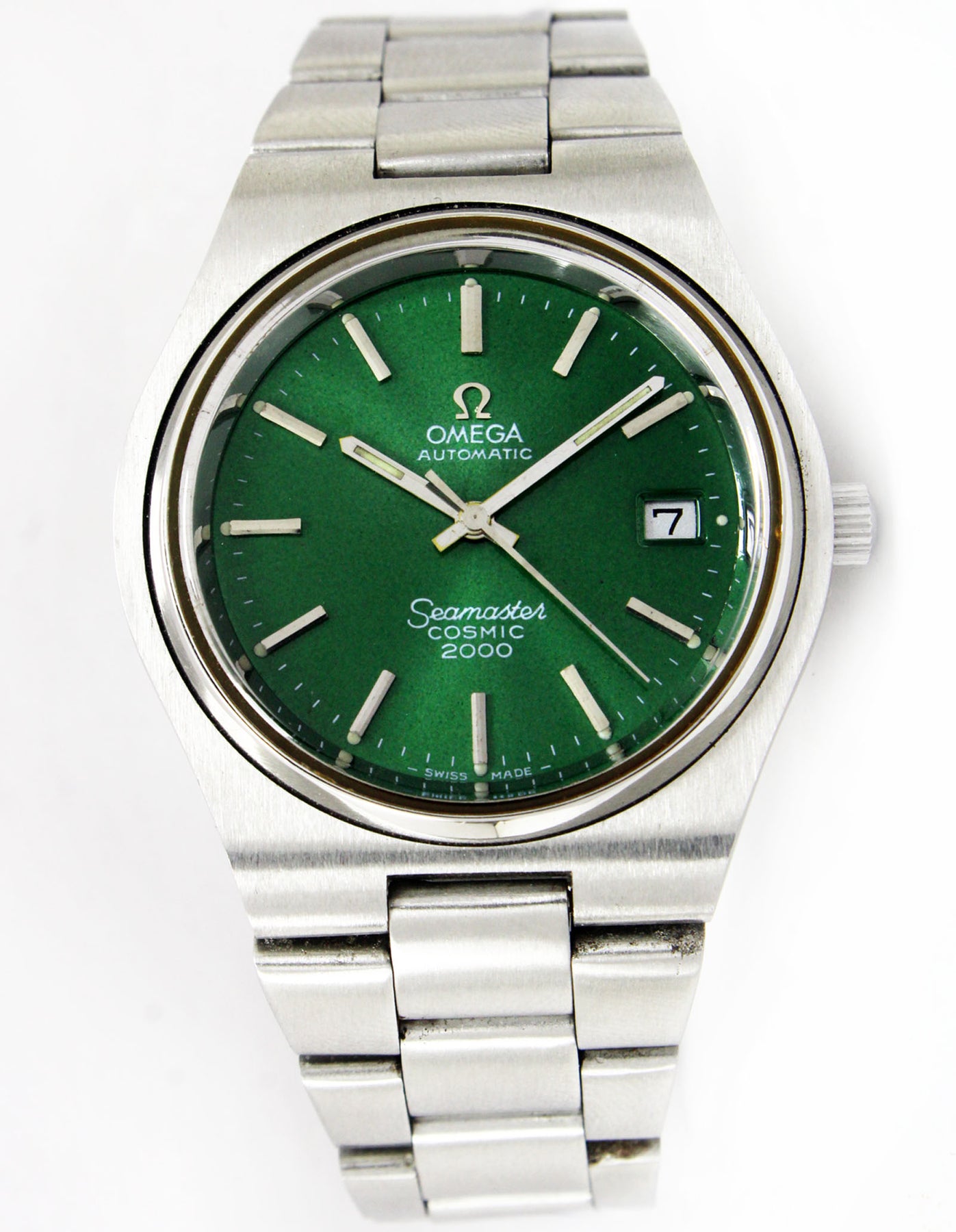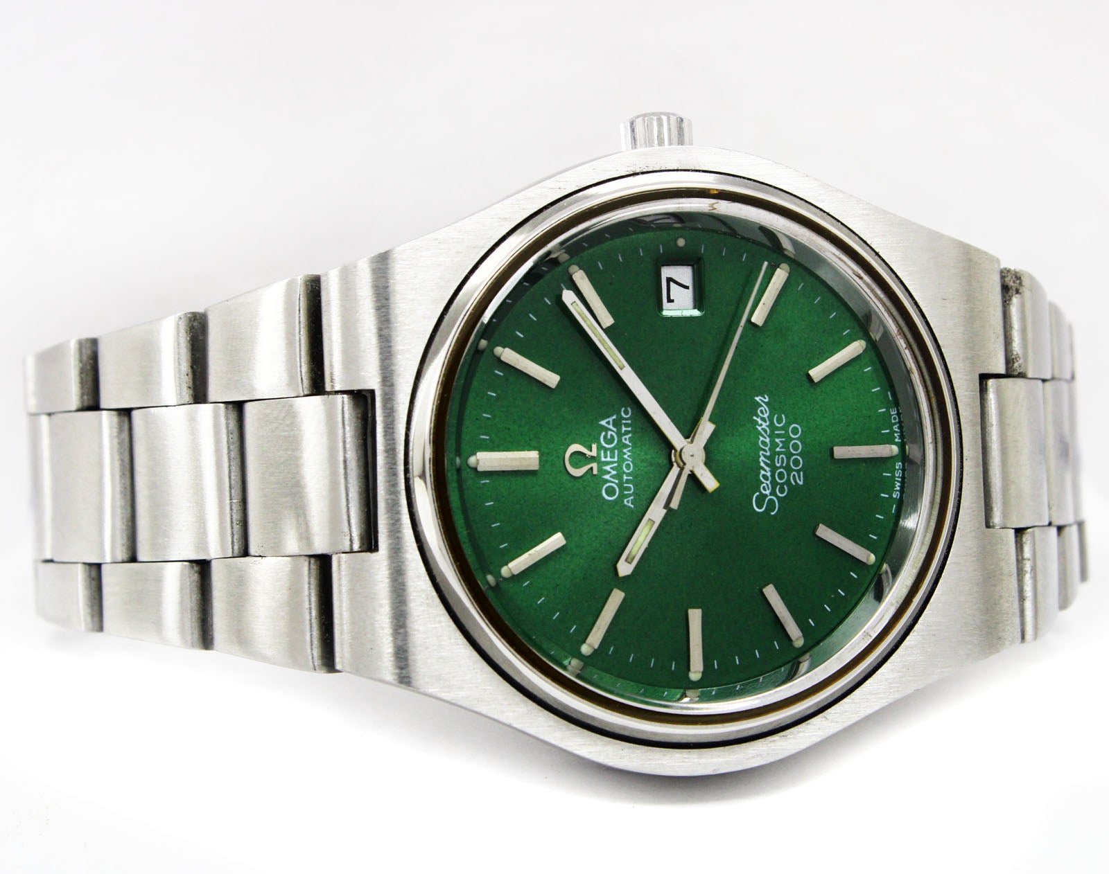 Vintage Omega Seamaster Cosmic 2000 Jumbo Sunburst Green 38mm Steel Watch C.1973